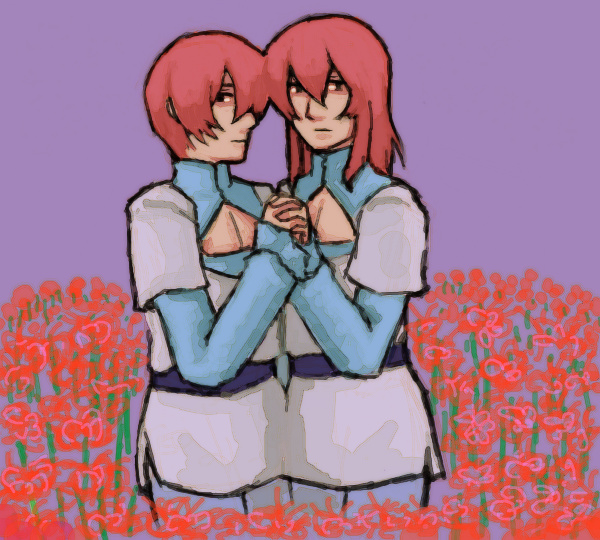 どろわーっつー手ブロみたいなサイトで描いた赤ペアにちょっぴり手を加えた。